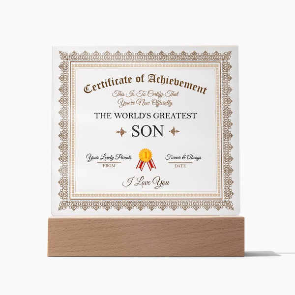 Acrylic Square Plaque - Certificate of Achievement Son