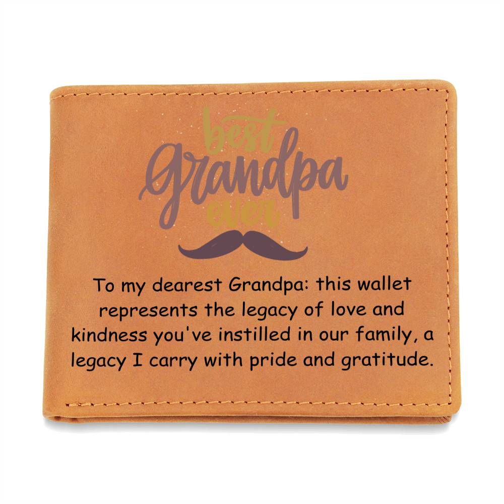 Para mi querido abuelo: esta billetera representa el legado de amor y bondad que has inculcado en nuestra familia, un legado que llevo con orgullo y gratitud.