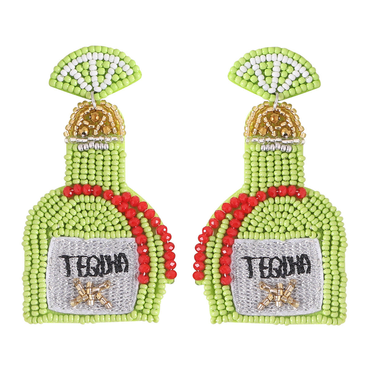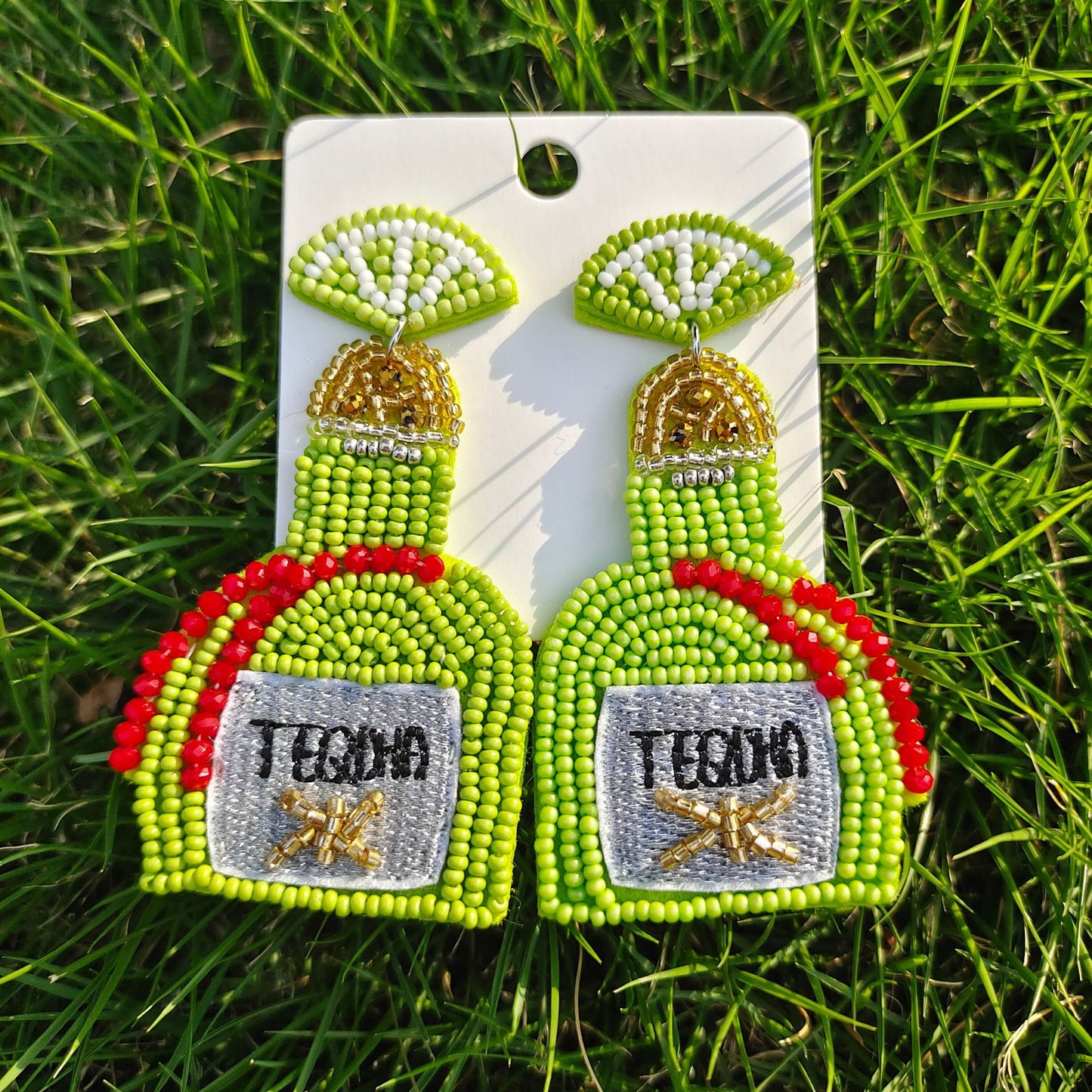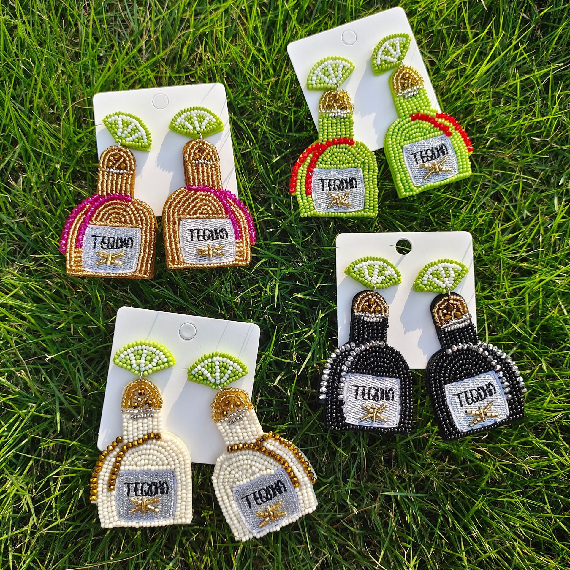 Pendientes largos con cuentas de botella de tequila personalizados de Minority Fashion