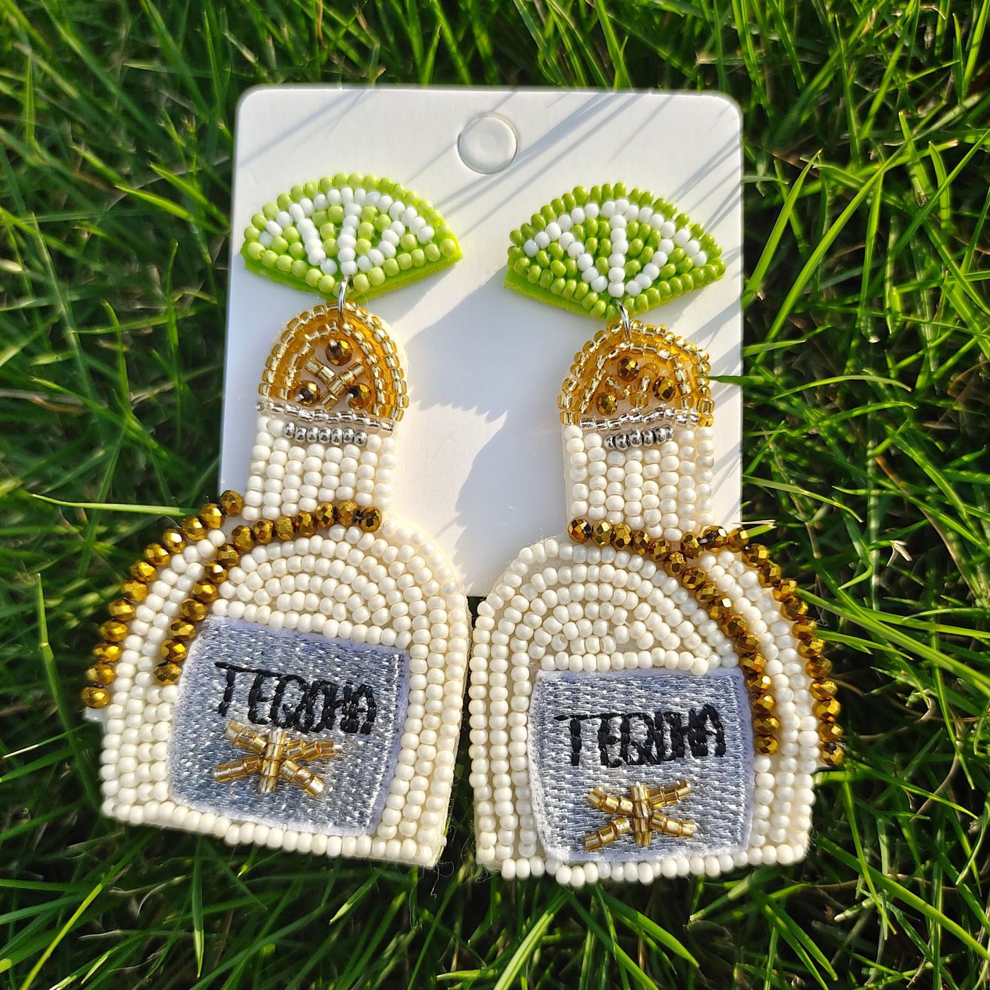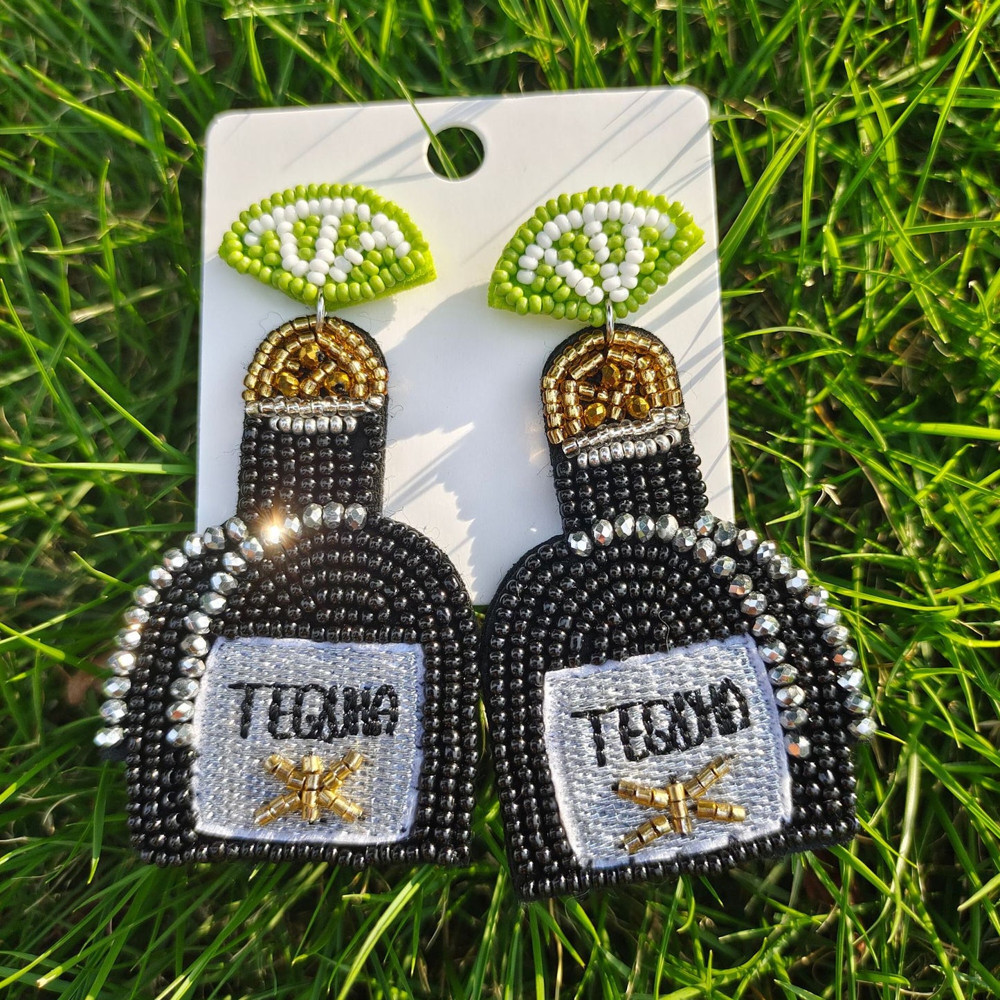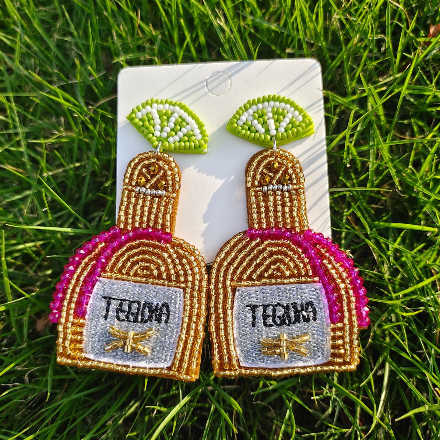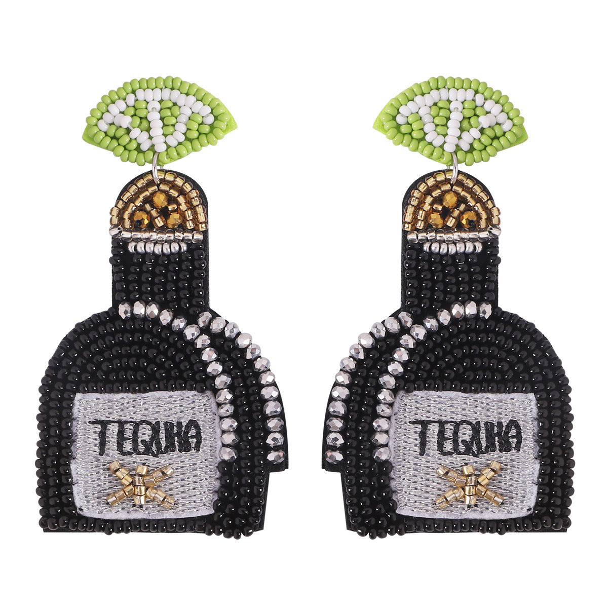 Pendientes largos con cuentas de botella de tequila personalizados de Minority Fashion