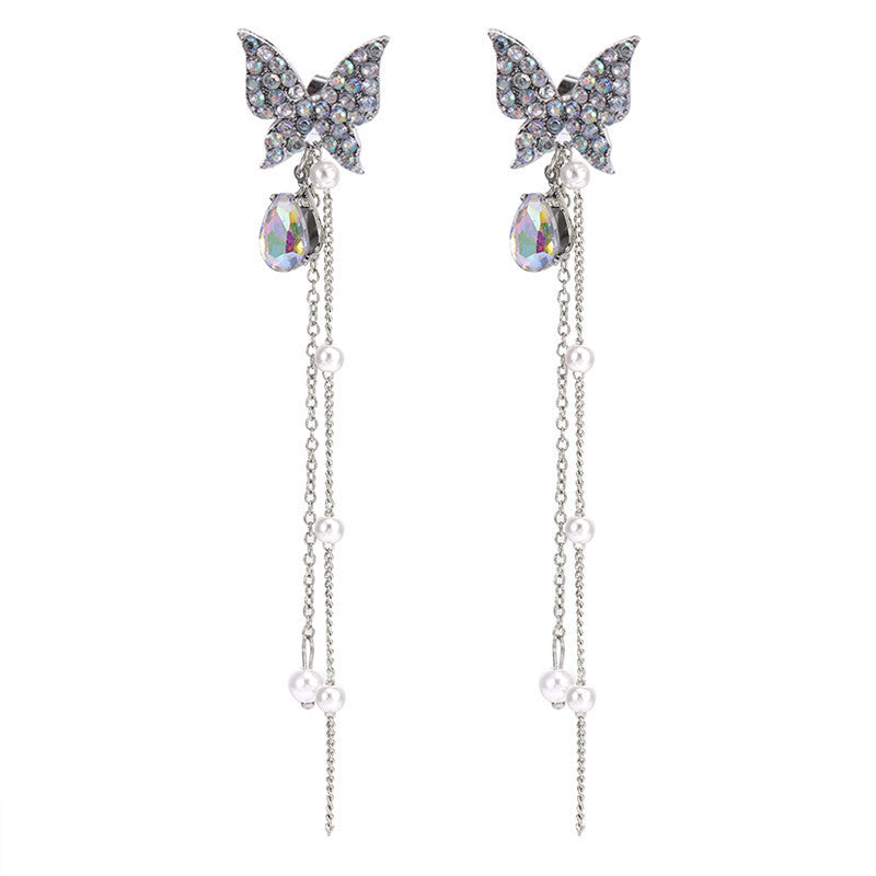 Pendientes largos de diamantes de imitación con flecos de moda de aguja de plata S925