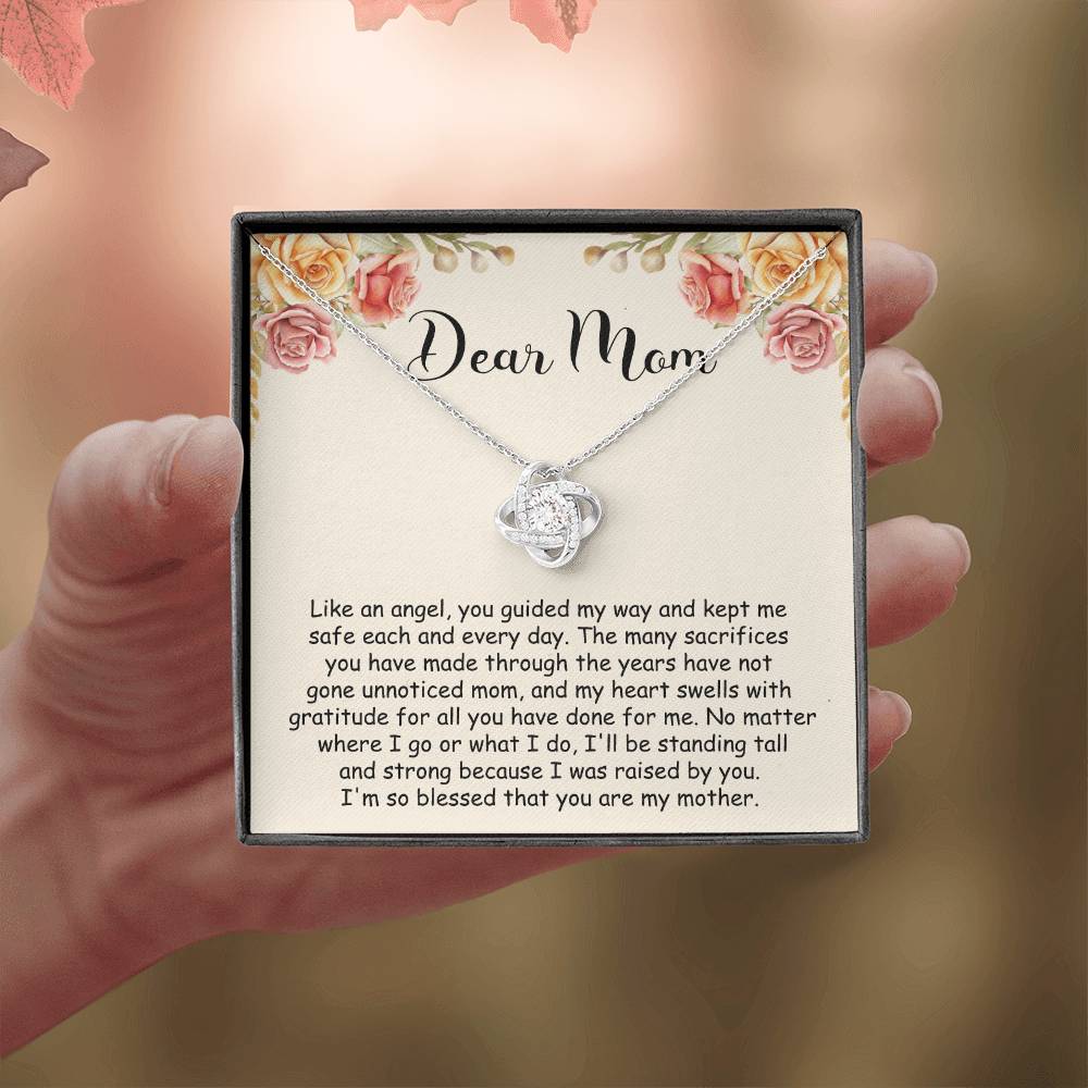 Discover the ultimate expression of love and appreciation with the Love Knot Necklace, the perfect gift for moms on Christmas, Mother's Day, or their birthday. This exquisite necklace symbolizes the unbreakable bond between mother and child, making it a timeless keepsake that she will cherish forever. Crafted with precision and elegance, the love knot design represents the strength and eternity of your relationship, capturing the essence of your heartfelt emotions in a piece of jewelry that will stand the test of time.