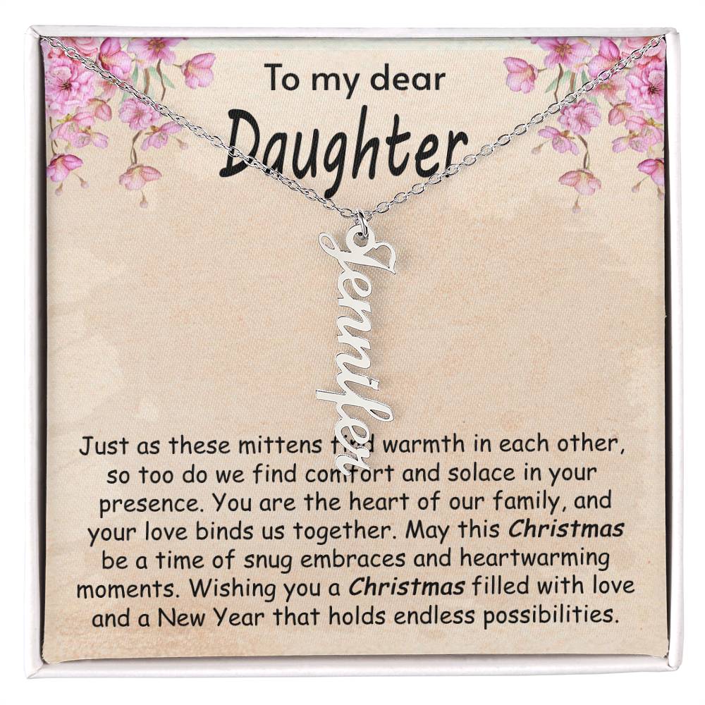 ¡Dale a esa persona especial un collar vertical personalizado hecho solo para ellos! Nuestro Collar con Nombre Vertical Personalizado es el regalo perfecto para sus seres queridos y se convertirá en un accesorio versátil para cualquier ocasión. Ya sea como un conmovedor regalo navideño, de aniversario o de cumpleaños, o simplemente porque sí, este collar único añade un toque moderno a cualquier conjunto.