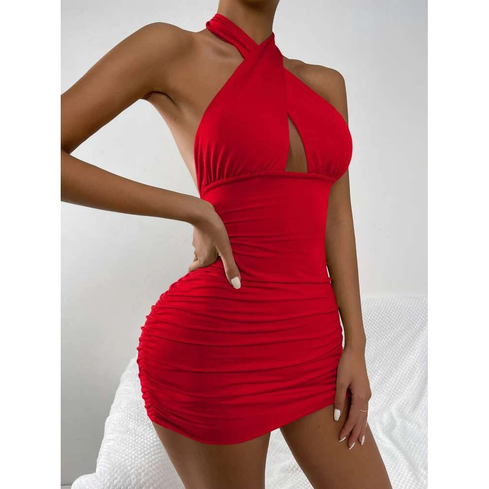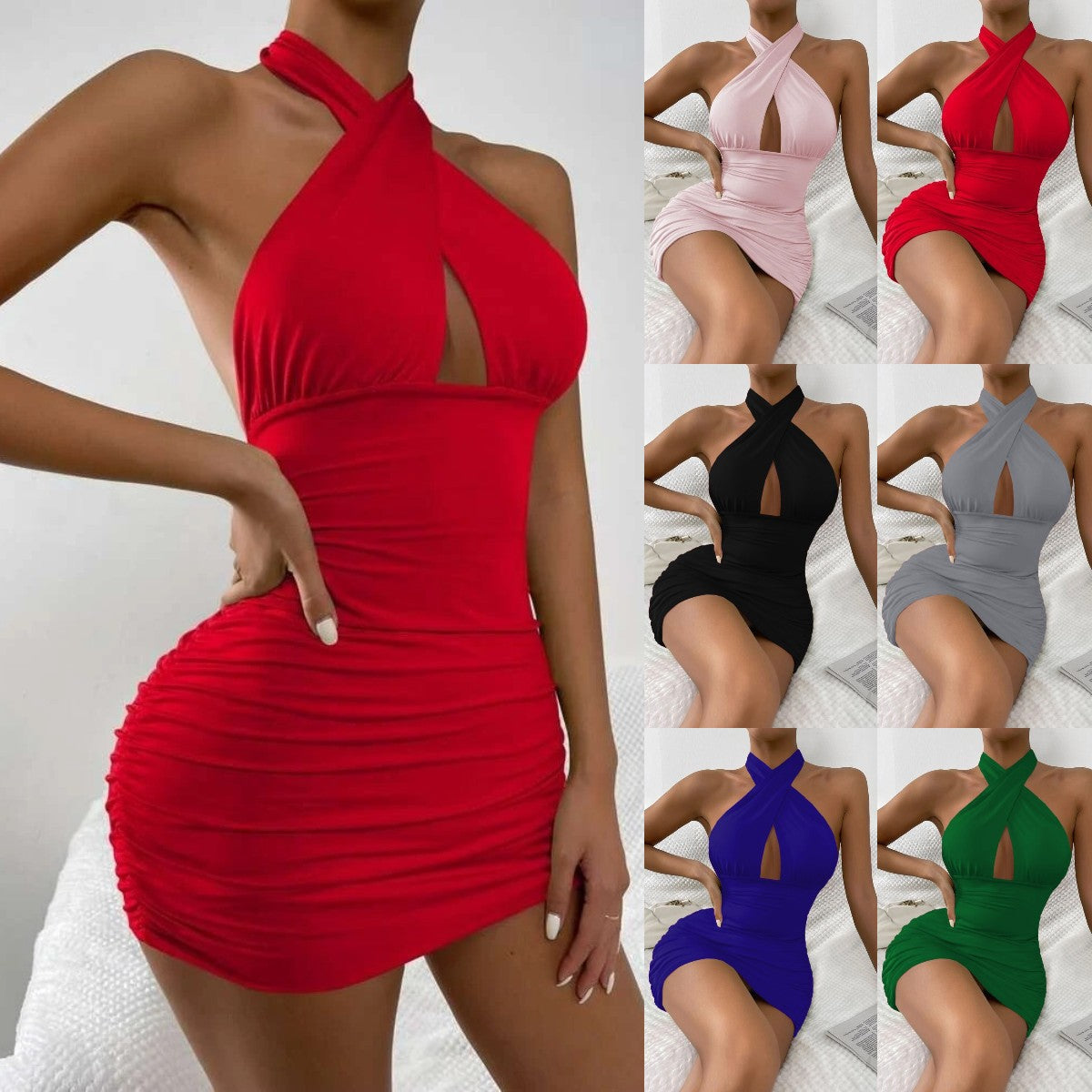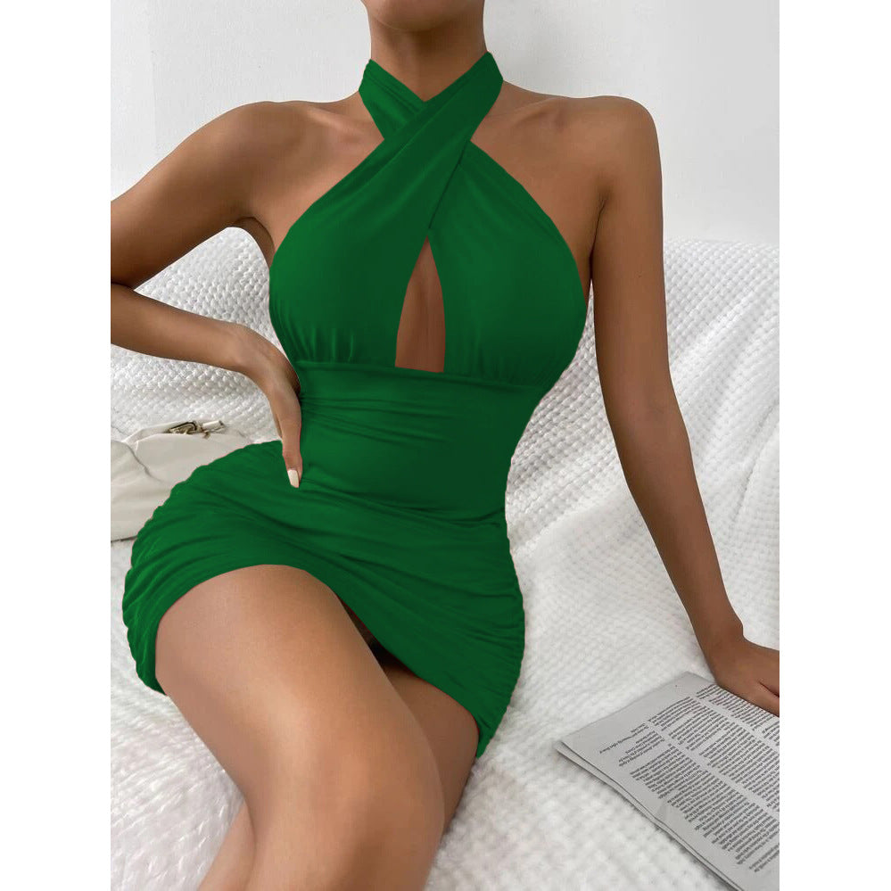 New Solid Color Cross Halter Temperament Sheath Dress For Women