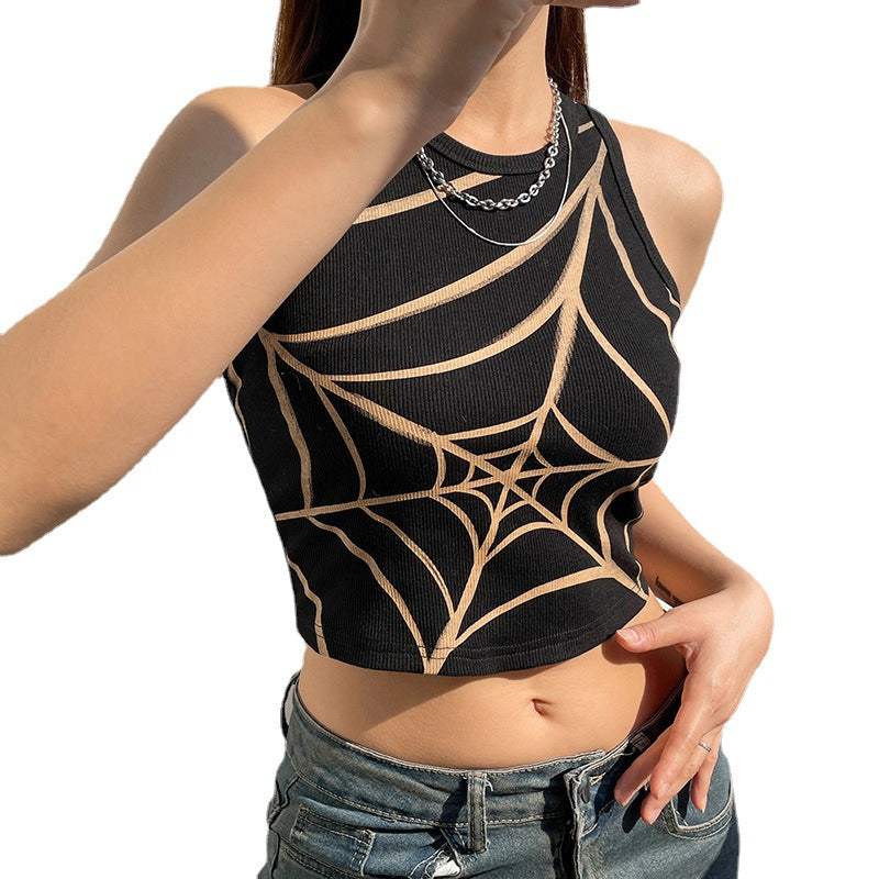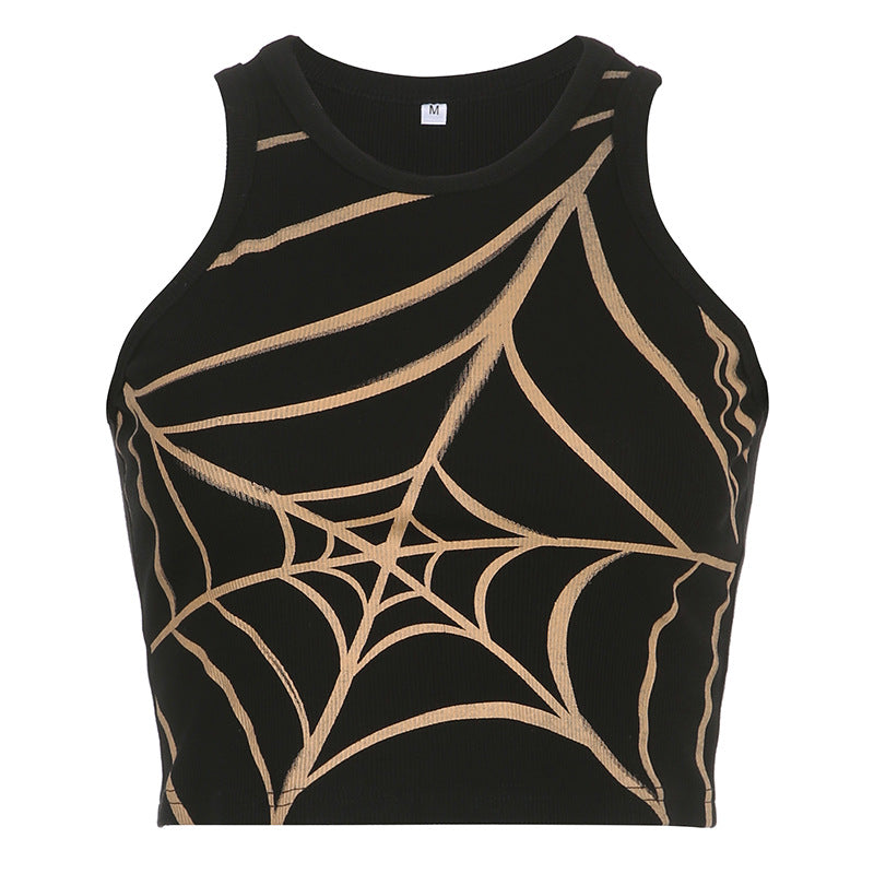 American Personalized Spider Web Printed Vest Female