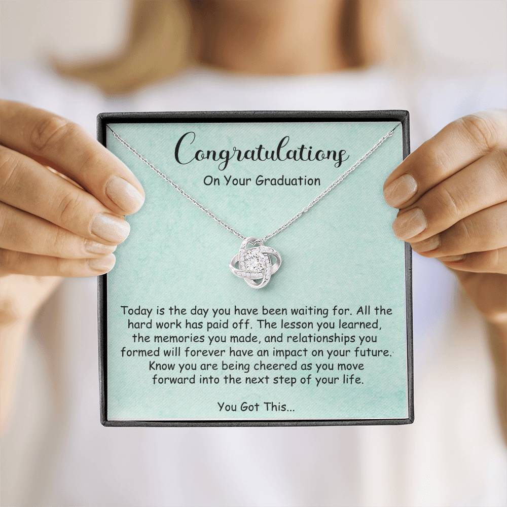 So, as she dons this necklace on graduation day, let it be a symbol of pride, joy, and endless possibilities. Because her journey may have started with a single step, but with this necklace around her neck, she'll walk confidently into the future, ready to conquer whatever challenges come her way.