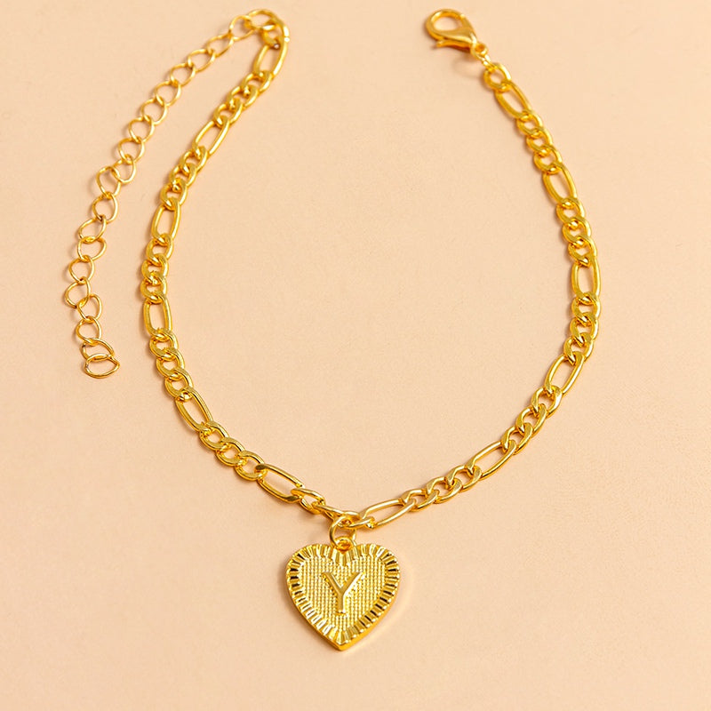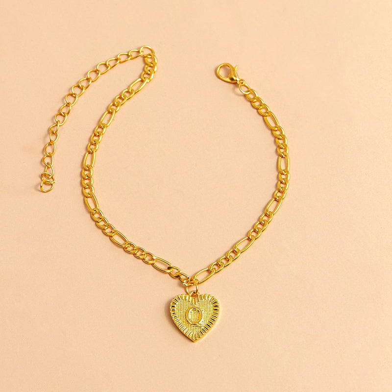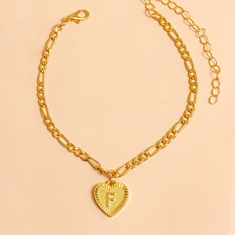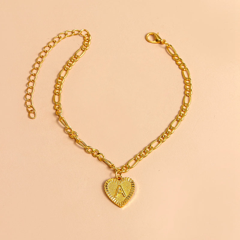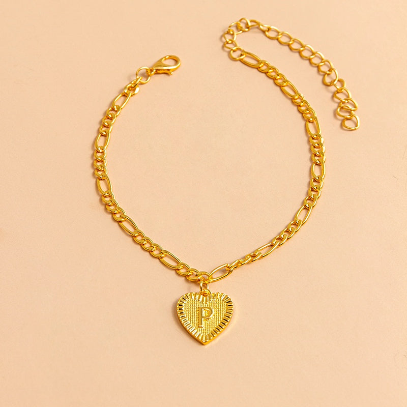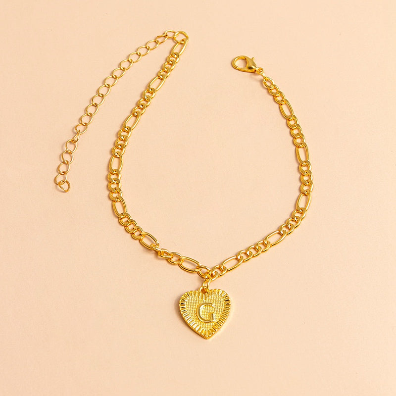 Initial Letter Anklet Gold Color Heart Pendant Foot Bracelets Women
