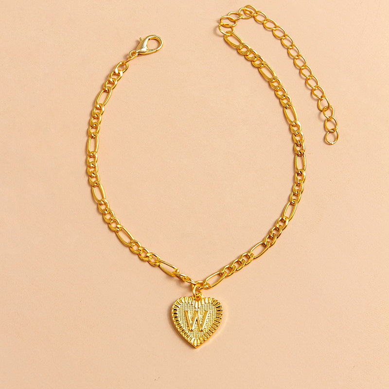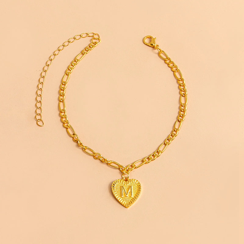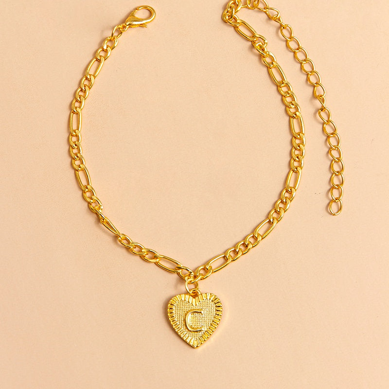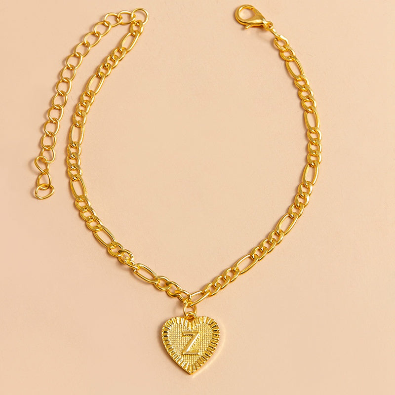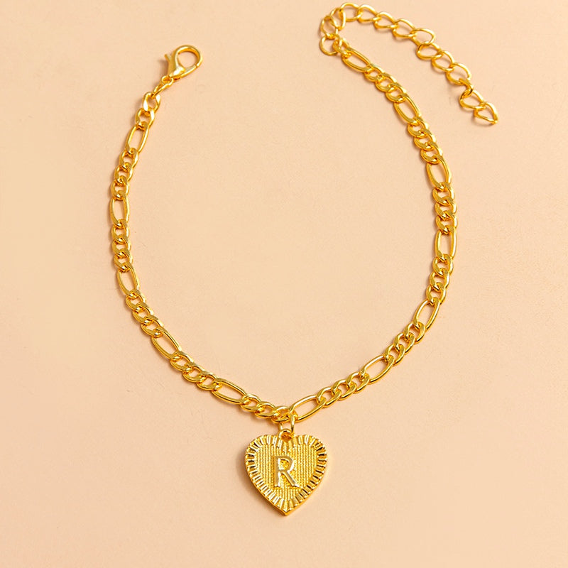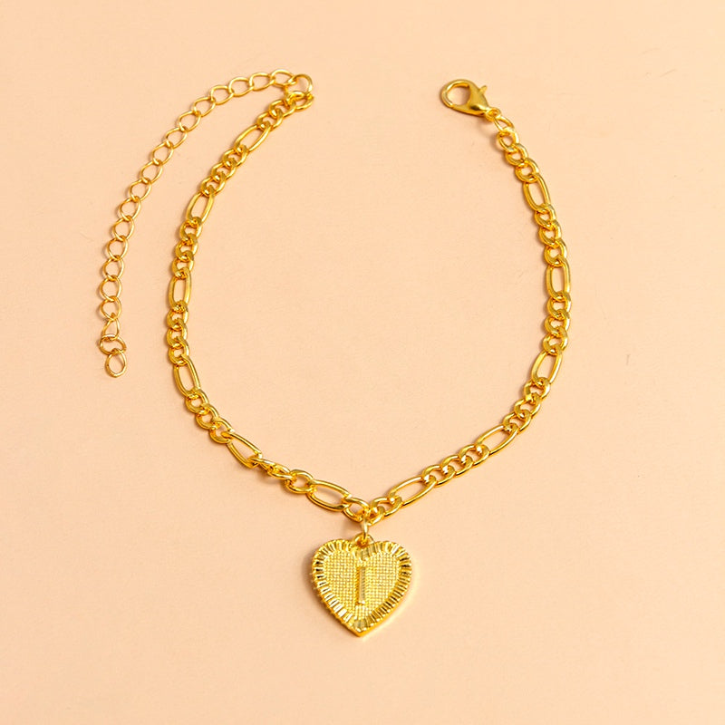 Initial Letter Anklet Gold Color Heart Pendant Foot Bracelets Women